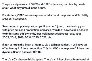 There has been a lot of talk about a resolution in the Middle East, but I would fade the idea of a quick fix that the market might be hoping for.