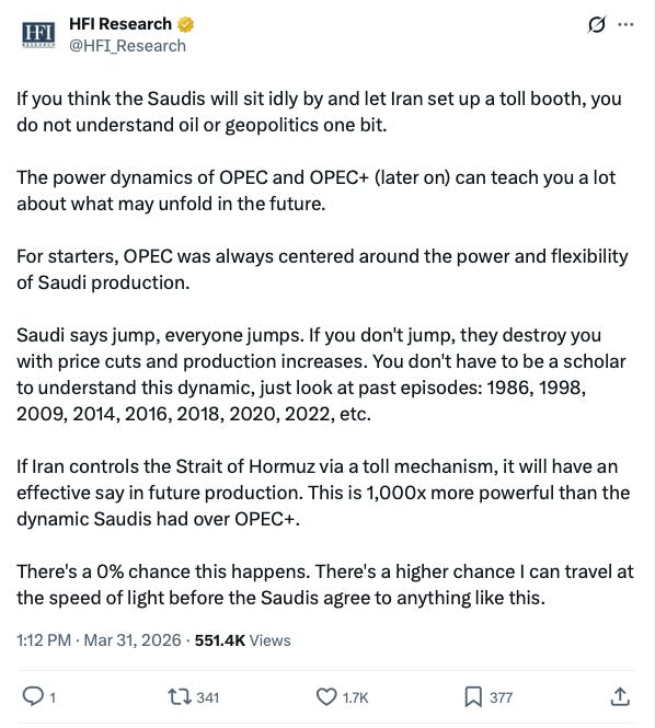 There has been a lot of talk about a resolution in the Middle East, but I would fade the idea of a quick fix that the market might be hoping for. When they are continuing to hit targets and are sending another carrier group to the area, along with the number of troops that have been deployed, that doesn’t scream that things are about to wind down. It suggests the opposite. There are also rumblings that Chechen forces might deploy Iran if the US puts boots on the ground, but we will see on that. I’m curious to see what Trump says in his address tonight, but it always comes back to this rule: don’t listen to what they say, watch what they do.