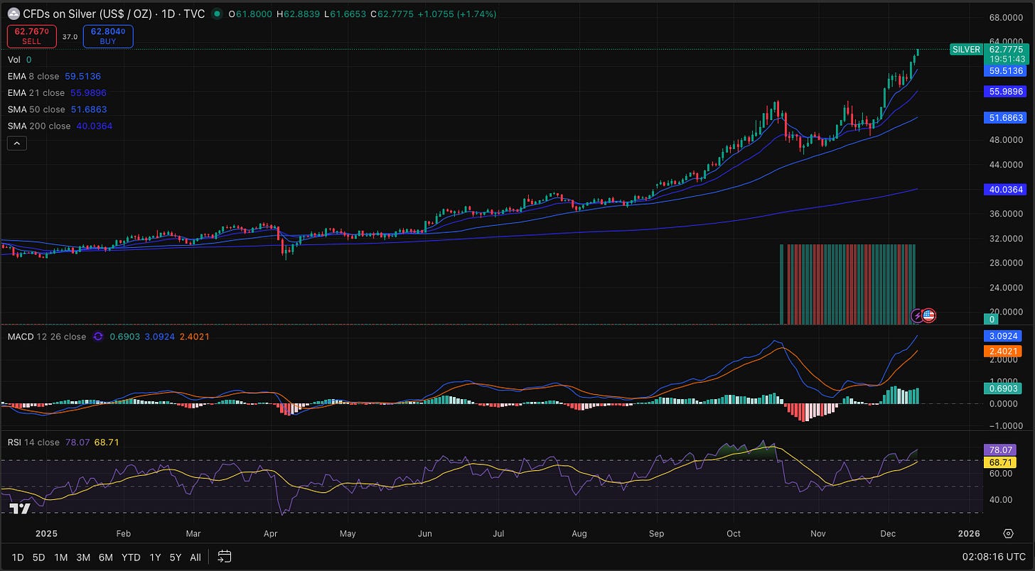 Silver is now bouncing around in the low-60s, and it seems like the next stop for the gold/silver ratio might be 60. SIL 0.00%↑ and SILJ 0.00%↑ look like they are set up to run to new highs, but we will see if investors start to put serious money to work in the miners. They definitely aren’t pricing in silver at $60/oz (or higher) or 2026 right now. To be fair, you won’t see me cheerleading the silver price every time we hit a new high, or calling for a massive parabolic move from here, but I think that the move in silver has legs if you have some patience. We might be due for a cooldown after a 20% move in the last three weeks, but I still think the silver miners are a pond worth fishing in at current valuations.